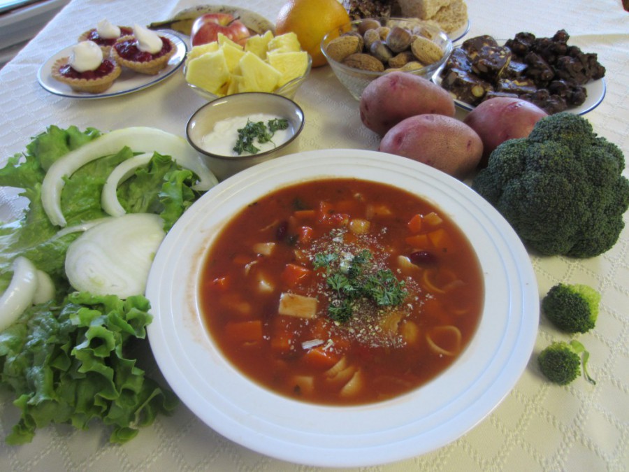 For a quick yet hearty lunch, I opened a 4-cup jar of my homemade tomato soup. I added 2 cups of vegetables that were left over from supper the day before, ½ cup raw macaroni and 2 cups of the above-mentioned baked beans together with ½ teaspoon basil. In 15 minutes the soup was ready to eat. Wow, was it good!