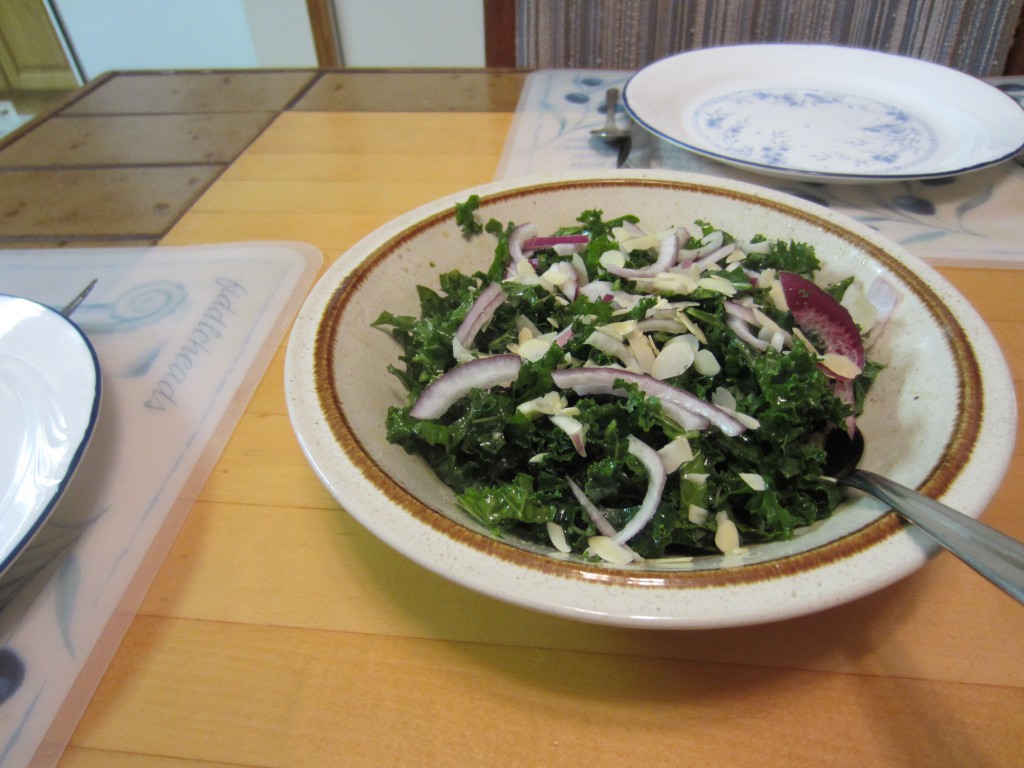 I often change a few of the ingredients, adding a few shredded carrots, chopped celery or other raw shredded vegetable. I also make different dressings; still using mainly kale and extra virgin olive oil as the oil.