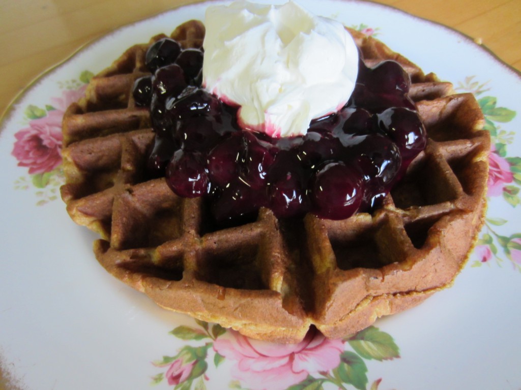 The following recipe is another favorite of ours. We enjoyed these at noon today with 3 cups of blueberries cooked and thickened with a mixture of 3 tablespoons of cornstarch, a few tablespoons of lemon juice, 2 packages of stevia and 1/2 cup of water. They are great with thickened strawberries as well.